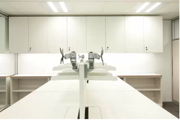 和很多設(shè)計公司一樣,工作臺上安裝了懸臂以放置電腦,可方便設(shè)計師之間高效互動,醞釀令人怦然心動的