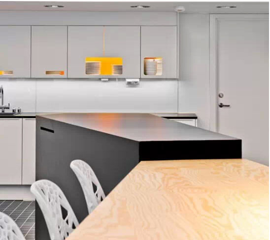 整個空間用幾何圖形、實(shí)物線條、豐富的色彩和造型家具塑造出一個獨(dú)特、個性十足的現(xiàn)代化辦公環(huán)境