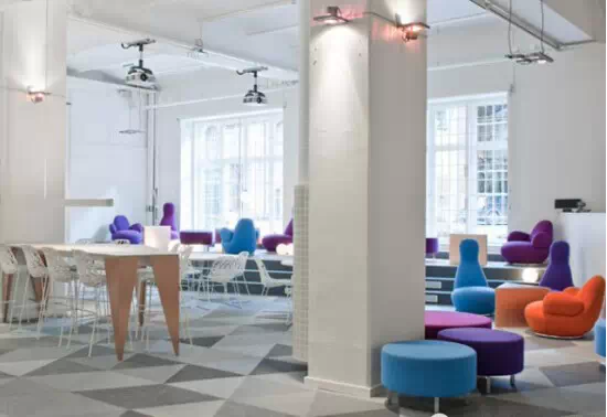 整個空間用幾何圖形、實(shí)物線條、豐富的色彩和造型家具塑造出一個獨(dú)特、個性十足的現(xiàn)代化辦公環(huán)境 充滿繽紛的色彩和現(xiàn)代家具。在墻壁的白色背景下,用電線電纜、耳機(jī)等通訊設(shè)備