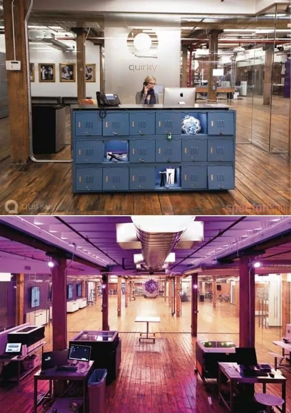 這家從2009年才成立的Quirky公司算是一家相對年輕的公司,但是自從成立之后卻已經(jīng)開發(fā)了大量產(chǎn)品。你可以發(fā)現(xiàn)在一些大商場中找到他們的商品,比如床上浴缸等。2012年,Quirky公司的新址坐落在曼哈頓西部的一個舊倉庫二樓。對于Quirky公司來說,這是一個理想的辦公室設(shè)計地點,因為這里面積巨大,分割為很多房間,比如會議室設(shè)計、工作區(qū)供員工發(fā)揮他們的靈感。▼
