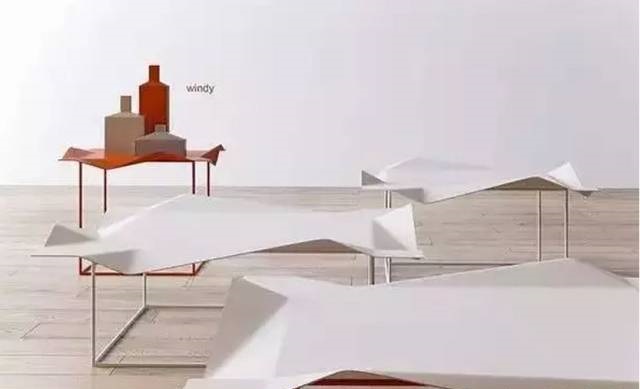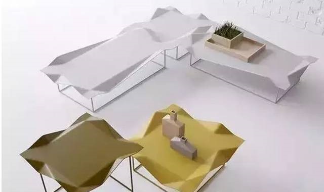 ▲ 像被風(fēng)吹皺了桌面,這是一系列帶有詩意的文藝范兒家具。桌面看似動態(tài)而柔軟,實(shí)為金屬材料制作。