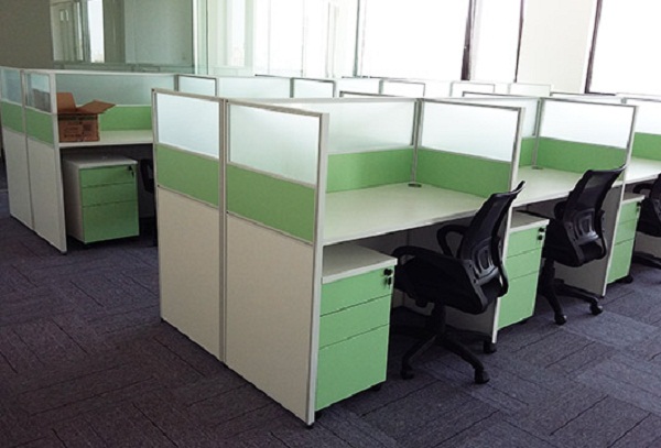 屏風(fēng)卡位采用防火板+磨砂玻璃+鋁合金設(shè)計(jì),在保留獨(dú)立的工作以及私人空間的同時(shí),需要與同事進(jìn)行合作時(shí),只需一個(gè)眼神。